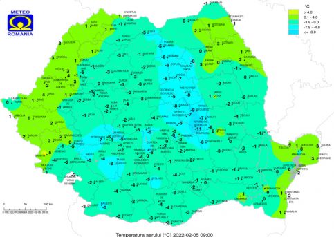 Temperaturile zilei de sâmbătă vor fi mai ridicate decât normalul acestei perioade. Maximele se vor încadra între 1 și 12 grade, iar minime între -5 și 2 grade Celsius.