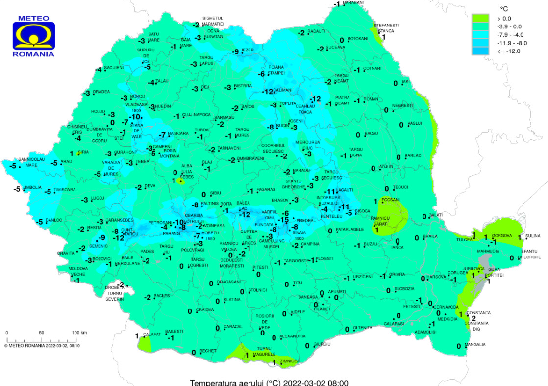 Prognoza meteo pentru 2 martie, vremea va fi mult mai rece pentru această perioadă, cerul va avea temporar înnorări şi se vor semnala precipitaţii local. Temperaturile minime se vor încadra între -6 şi 1 grad.