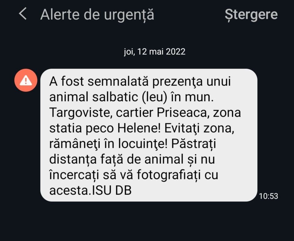 RO-ALERT, ALERTĂ DE GRADUL ZERO în municipiul Târgoviște, cartier Priseaca, un leu este în libertate, animalul a fost văzut în zona unei stații PECO.