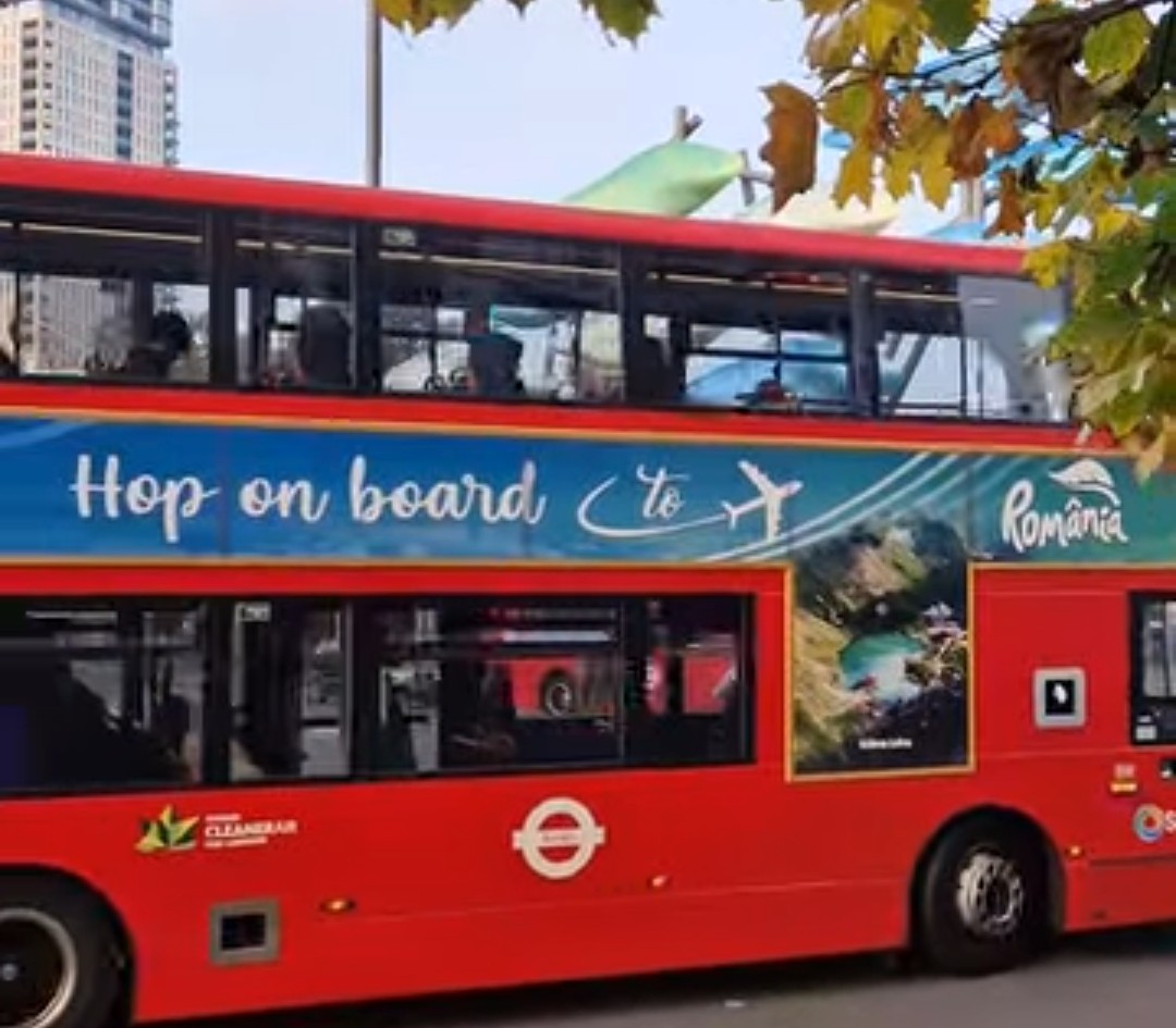 În Londra, 150 de autobuze vor purta mesajul „Hop on board to România”, estimându-se o expunere de 51,1% din populația capitalei britanice. Impactul campaniei este imens, cu o prognoză de peste 16 milioane de impresii. În inima orașului, 50 de autobuze vor fi dedicate acestei inițiative, oferind o vizibilitate semnificativă și având un impact de aproximativ 5,6 milioane de vizualizări.