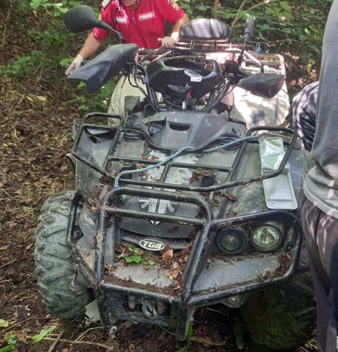 S-a răsturnat cu ATV-ul într-o râpa, în zona Pucheni, alerta la 112 a fost dată de o persană care trecea prin zonă și a văzut nenorocirea. La fața locului au intervenit pompierii de la Voinești și Târgoviște .