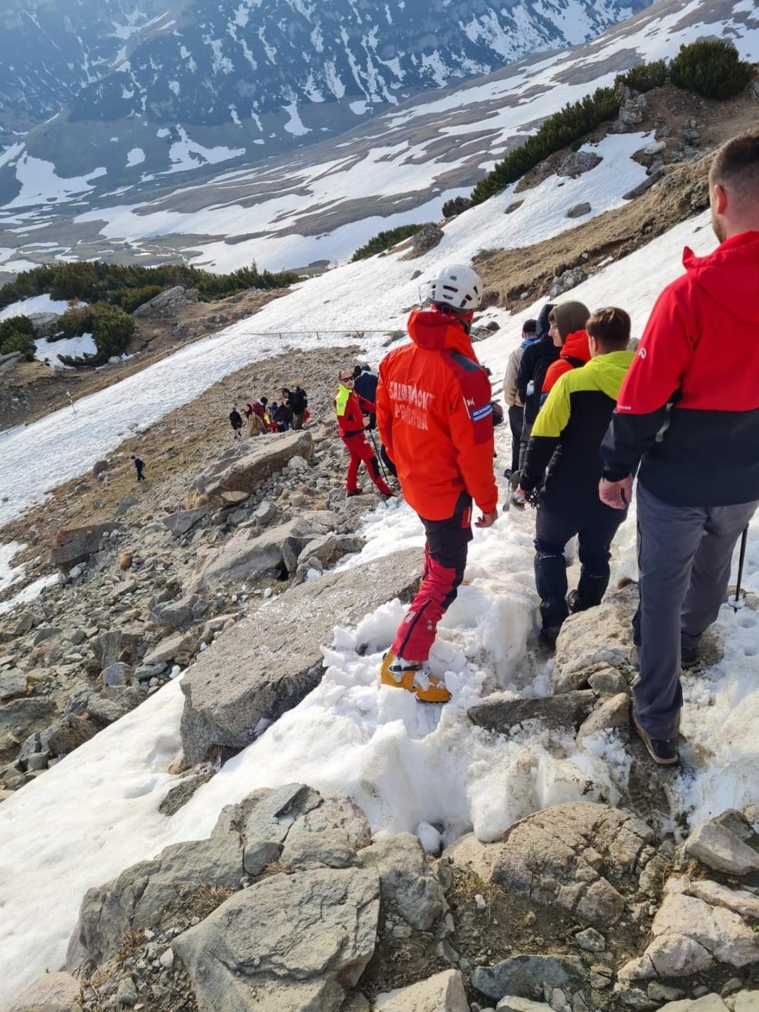 Salvamont Dâmbovița și Salvamont Bușteni au venit în sprijinul a 21 de oameni care s-au aventurat pe Valea Caraimanului, traseu inpracticabil în condiții de iarnă, este încă zăpadă la munte, nu vă aventurați pe trasee dacă nu sunteți echipați.