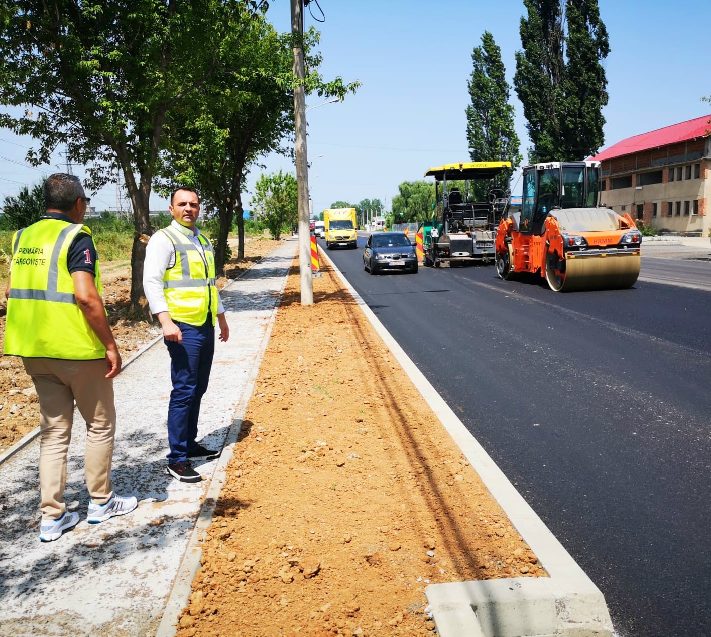 Se lucrează pe strada Șoseaua Găești din municipiul Târgoviște, la turnarea celui de-al doilea strat de asfalt, dar și la canalizația subterană care va prelua actualele rețele de utilități supraterane.