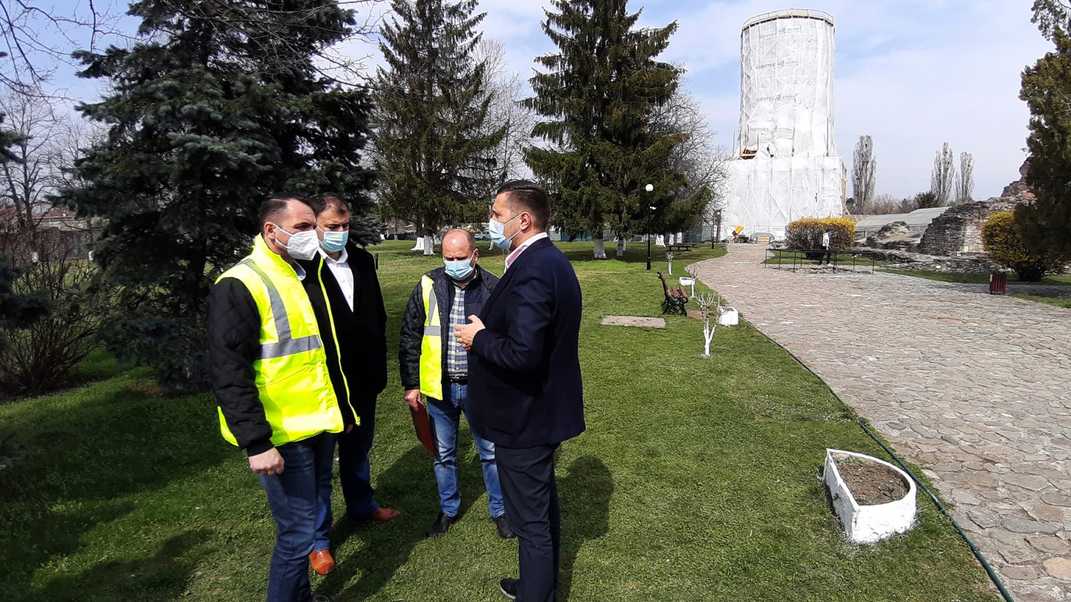 Preşedinte Corneliu Ştefan și primarul Cristian Stan alături de responsabilii de proiect au vizitat şantierele de la Turnul Chindiei, Biserica Mare Domnească şi Biserica Sfânta Vineri.