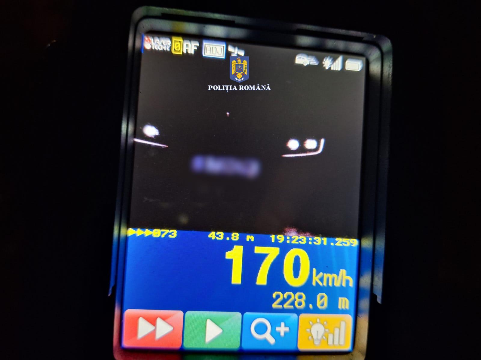 Șofer prins de politiștii dâmbovițeni pe raza localității Săcuieni, în timp ce conducea un autoturism cu viteza de 170 de km/h, este vorba despre un bărbat de 32 de ani, din Adânca.