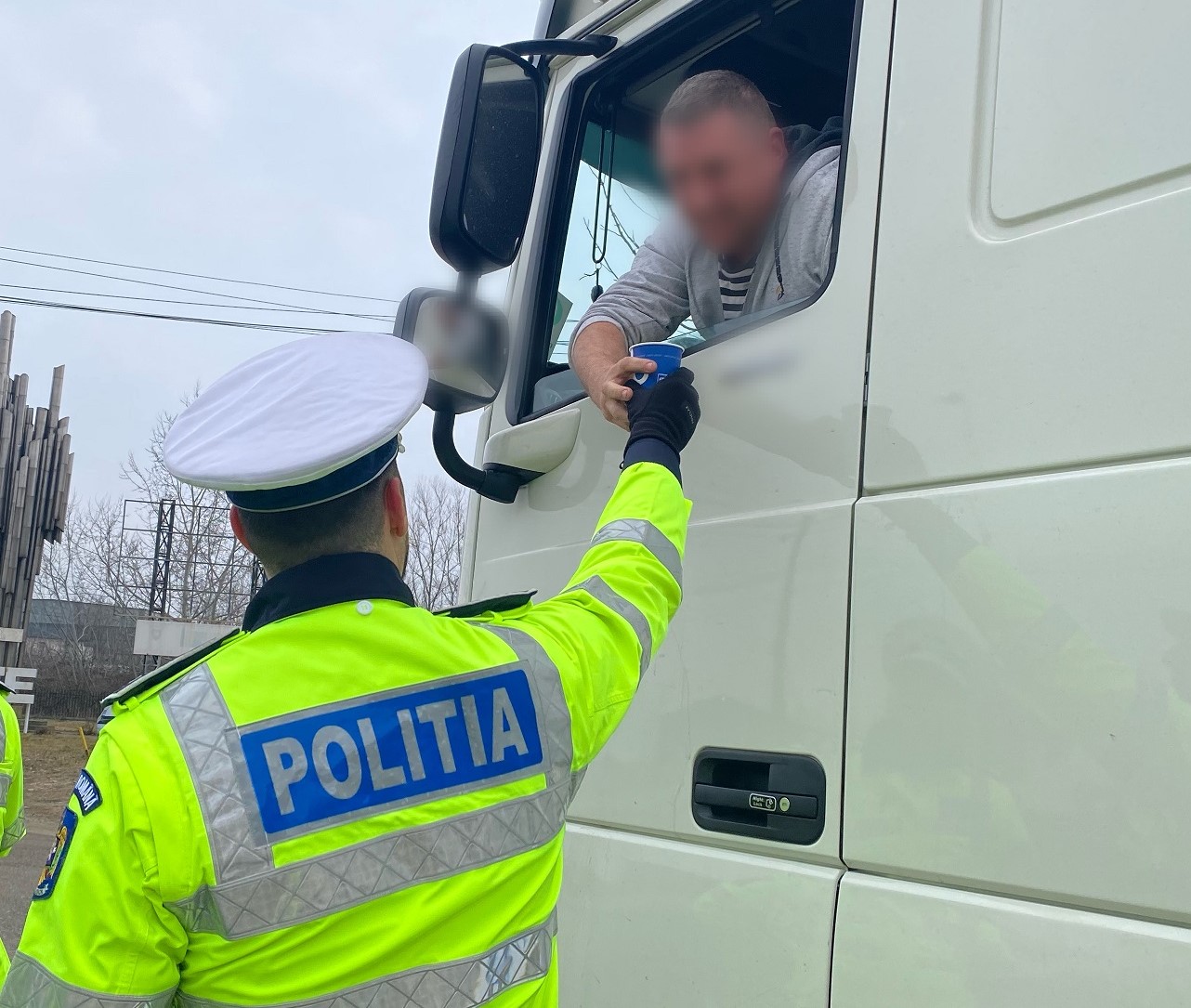 Pe lângă recomandările preventive, șoferii au primit ceai sau cafea din partea polițiștilor.
