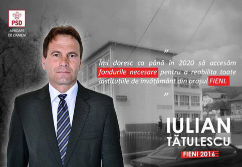 Sociopol a realizat un sondaj şi în oraşul Fieni, unde schimbarea este cuvântul la ordinea zilei pentru alegerile din data de 5 iunie 2016. Iulian Tătulescu, candidatul PSD pentru primăria Fieni este omul care poate aduce schimbarea în oraşul Fieni.