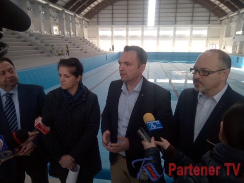 În trei luni de zile am reuşit deblocarea finanţarii , astfel că în momentul de faţă suntem la o lună şi un pic de finalizarea acestei investiţii, investiţie care vizează un Complex de Nataţie pe o suprafaţă de 105.000 metri pătraţi. Este vorba de o investiţie complexă în afară de acest bazin olimpic, căliderea C1, aşa cum este denumită, mai există zona de ştrand, zona de spectacole, terenurile de minifotbal, terenurile de tenis, terenul de baschet, terenul de volei, plaja, avem două turnuri cu tobogane, zona de biciclete, zona de role , avem şi 250 de locuri de parcare , cabinet medical, săli de forţe, saună . Vrem să dezvoltăm şi o zonă de servicii . A ajuns şi o parte din dotări.Cel care va conduce acest Complex de Nataţie, are obligaţia de a organiza activităţi cuprinse în calendarul Federaţiei Române de Nataţie . Astăzi începe umplerea bazinului .