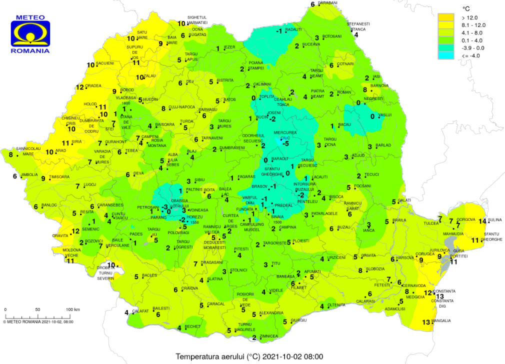 La munte, cerul va fi mai mult senin, iar vântul va sufla slab şi moderat, cu intensificari temporare, pe arii restrânse în zona Carpaţilor Meridionali. Valorile termice vor fi comparabile cu cele din intervalul anterior. Vor fi condiţii de bruma şi izolat, pe vai şi în depresiuni, se va semnala ceaţa.