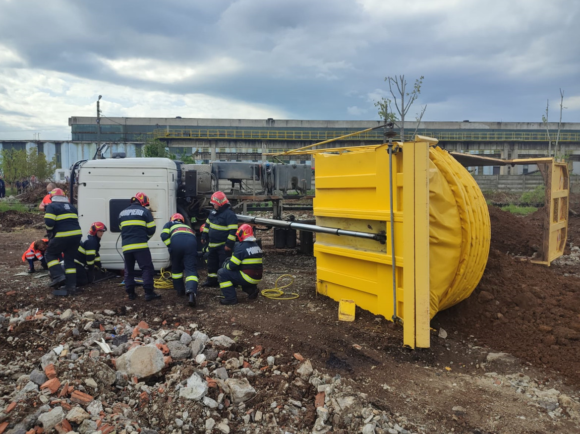 La fața locului au intervenit pompierii de la Detașamentul Târgoviște cu 1 ASAS, 1 Descarcerare și SAJ DB cu un echipaj.Pompierii au constatat că un autocamion s-a răsturnat și a surprins o persoană, șoferul.