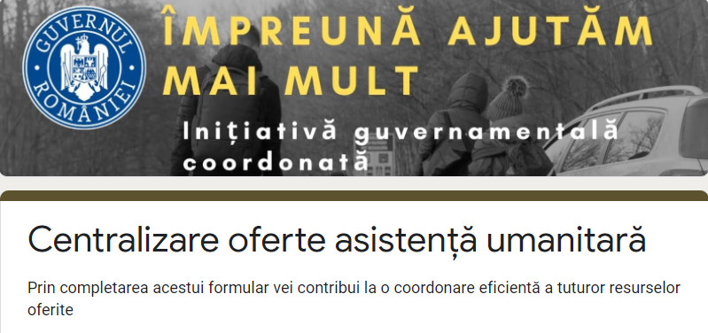 ”Ucraina – Împreună ajutăm mai mult” este Platforma disponibilă ce poate fi accesată, începând de sâmbătă, de pe site-ul Guvernului României de către voluntarii și entitățile private care vor să doneze.