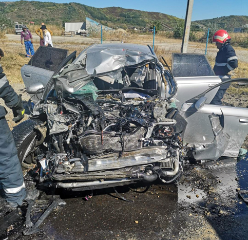 În urma impactului, între fiarele contorsionate a rămas captivă o persoană. La faţa locului au ajuns pompierii de la descarcerare , ambulanţa dar şi elicopterul SMURD.