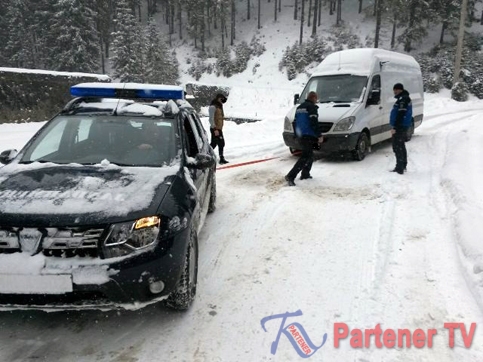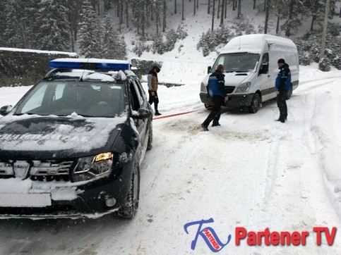 Trei turiști din județul Olt aflați în dificultate în Masivul Montan Bucegi au fost sprijiniți de jandarmii montani.În urma unui apel telefonic, jandarmii din cadrul Postului Montan Zănoaga au intervenit în Masivul Montan Bucegi, în sprijinul unor persoane care se aflau în dificultate.Cei trei turişti din județul Olt se aflau în deplasare cu autovehiculele pe DJ 714 Peștera-Moroeni și intenționau să ajungă la domiciliu. La un moment dat, în zonele Cabana Roșie și Plaiul Mircii au derapat şi nu au mai putut continua deplasarea cu autovehiculele, din cauza condițiilor meteorologice nefavorabile și a stratului de zăpadă depus pe drumul principal.