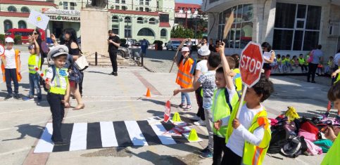 Poliţiştii şi cadrele didactice au vegheat la siguranţa copiilor pe timpul deplasării.In Piaţa Tricolorului, elevii au susţinut un program artistic, au organizat parada indicatoarelor şi au scandat mesaje cu caracter preventiv, pentru reducerea victimizării prin evenimente rutiere.