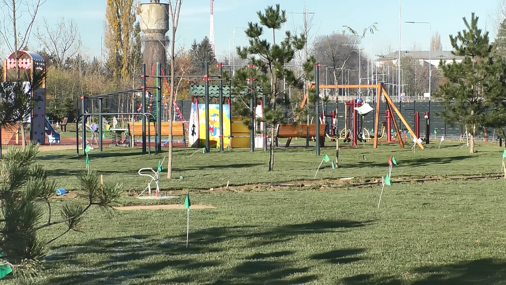 Sunt în plină desfășurare lucrările de așternere a rulourilor de gazon, vorbim de 14.000 mp de gazon.