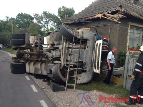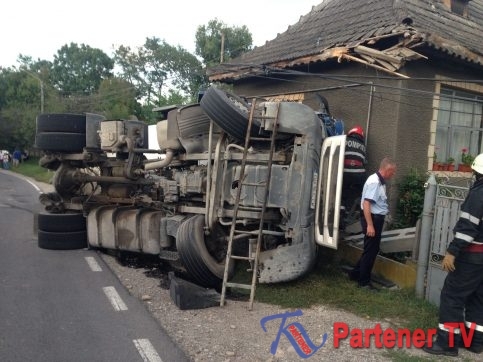 În zona accidentului, circulația se desfășoară cu restricții, pe un sens de mers. Deja s-a luat legătura cu firma la care lucre șoferul pentru a veni și a ridica mastodontul