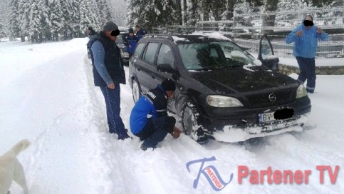 Iarna s-a instalat în masivul dâmboviţean Bucegi. În această dimineaţă a nins ca-n poveşti în zona Peştera-Padina –Moroeni. jandarmi zapada 1Potrivit primelor informaţii se pare că stratul de zăpadă atinge în jur de 10-15 cm. În zona montană dâmboviţeană, aflați în misiune de patrulare, jandarmii montani de la Peştera au fost martorii primei ninsori din această iarnă  și în același timp au acordat sprijin unor bărbaţi aflați în dificultate şi anume aceştia nu aveau maşina echipată corespunzător  pentru iarnă. I3mediat jandarmii montani au sărit în sprijinul bărbaţilor  care nu mai puteau înainta cu autovehiculul din cauza stratului de zăpadă format pe drum. Jandarmii le-au ofertit lanţurile din dotare si astfel bărbaţii au putut ajunge de la Bolboci  în zona Padina: „ Trei muncitori, aflați în dificultate, în Masivul Montan Bucegi au fost sprijiniți de jandarmii montani.Astăzi, 24 noiembrie a.c., în urma unei solicitări telefonice, jandarmii din cadrul Posturilor Montane Ordine Publică Peștera și Zănoaga au intervenit pe DJ 714 Moroeni-Bolboci-Peștera din Masivul Montan Bucegi, în sprijinul unor persoane care se aflau în dificultate.Cei trei muncitori au plecat cu autoturismul de la locul de cazare, din zona Bolboci și intenționau să ajungă în zona Padina. La un moment dat, în zona Plaiul Mircii de pe DJ 714 nu au mai putut continua deplasarea cu autovehiculul, din cauza stratului de zăpadă format pe drumul principal și a neechipării corespunzătoare a autovehiculului.În urma acțiunii jandarmilor montani, cele trei persoane au fost sprijinite să deblocheze autovehiculul, prin montarea de lanțuri pe roțile autoturismului și au fost însoțite în condiții de siguranță până în zona Padina, în prezent fiind în afara oricărui pericol.Turiştii aflaţi în dificultate în zona Masivului Montan Bucegi pot apela cu încredere numărul unic de urgenţă  „112” sau numerele de telefon 0749.034639 / 0749.058037 pentru a solicita sprijinul imediat al jandarmilor montani”, a declarat cpt.Ciprian Vătăşelu,purtător de cuvânt IJJ Dâmboviţa. Cu această ocazie jandarmii montani recomandă turiştilor şi persoanelor care intenţionează să se deplaseze în zonă, să aibă  autoturismele echipate corespunzător pentru condiţii de iarnă, echipament adecvat sezonului rece şi zonei de munte, să se informeze asupra itinerariului propus şi gradului de dificultate, să folosească numai drumurile deschise circulaţiei adică DJ 714 Moroeni –Bolboci –Peştera , iar în caz de accident sau ori de câte ori este nevoie, să ceară sprijinul jandarmilor, fie prin contact direct, fie prin apelarea numărului unic de urgenţă 112. Şi la acastă oră ninge în zona Padina-Peştera. Deja CJ Dâmboviţa a trimis utilajele de deszăpezire în zona montană Moroeni-Padina Peştera. În aceste condiţii de iarnă turiştilor le este interzis accesul pe DJ 713 Cabana Cuibu Dorului-Dichiu. Jandarmii montani vor fi prezenți în teren cu scopul de a identifica eventuale probleme ale celor ce se află în zonă și vor ține permanent sub observaţie zonele în care turiştii s-ar putea confrunta cu situaţii dificile din cauza condiţiilor meteorologice.