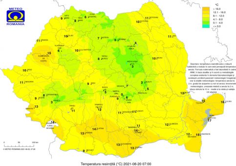 Temperaturile maxime se vor încadra între 24 şi 32 de grade, cu valorile cele mai ridicate în sudul Olteniei, iar cele minime vor fi cuprinse între 6 grade în depresiunile din estul Transilvaniei şi 20 de grade pe litoral.