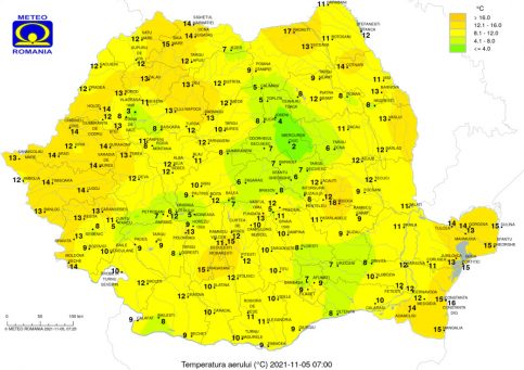 Temperaturile maxime se vor încadra, în general, între 14 și 25 de grade, cu cele mai ridicate valori în zona subcarpatică a Munteniei, iar cele minime vor fi cuprinse între 5 și 14 grade.