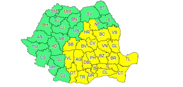 Notă: astfel de fenomene se vor semnala pe arii restrânse și în restul teritoriului.