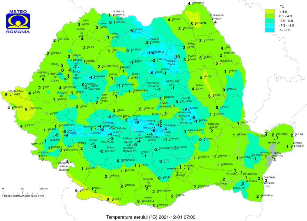 Cerul va fi variabil, mai mult noros în vestul, centrul şi nordul ţării, unde local vor fi precipitaţii slabe, predominant sub formã de ploaie şi lapoviţă. La munte, precipitaţiile vor fi mai ales sub formă de ninsoare la începutul intervalului, apoi mixte şi vor fi condiţii de polei.