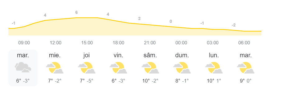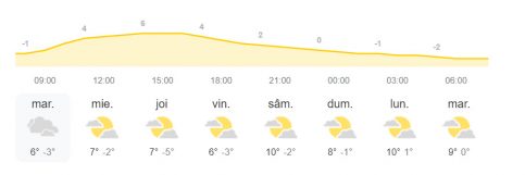 Precipitații sub formă de ninsoare se vor semnala și în vestul, nordul și centrul țării, iar în celelalte zone vor fi precipitații mixte. Temperaturile maxime se vor încadra între 0 şi 8 grade, iar cele minime, în general, între -9 şi 1 grad.