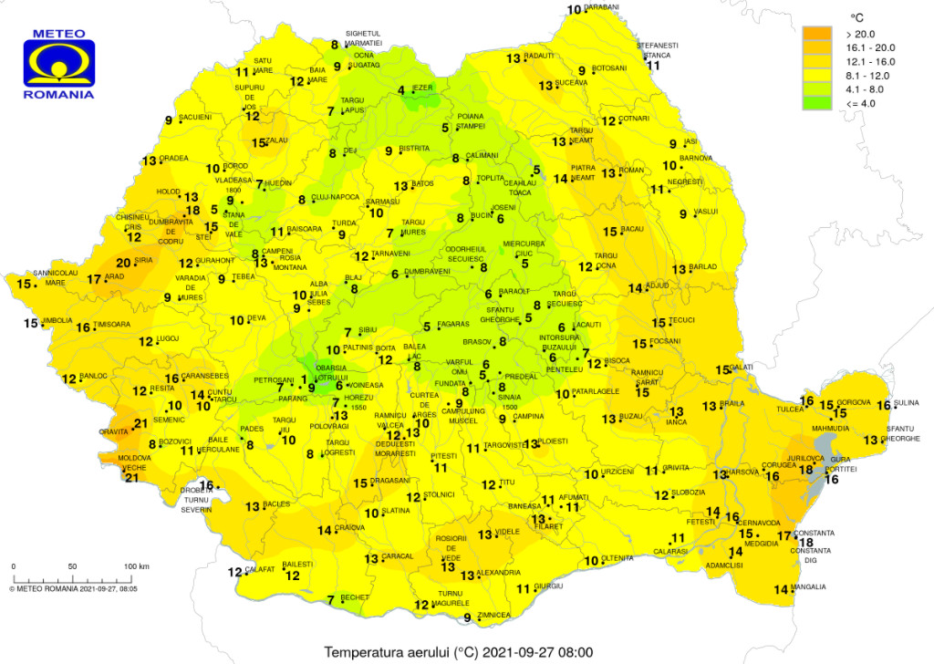 Temperaturile maxime se vor încadra între 16…18 grade în nordul Moldovei şi 26…27 de grade în regiunile sudice. Pe arii restrânse, dimineaţa, se va semnala ceaţă.