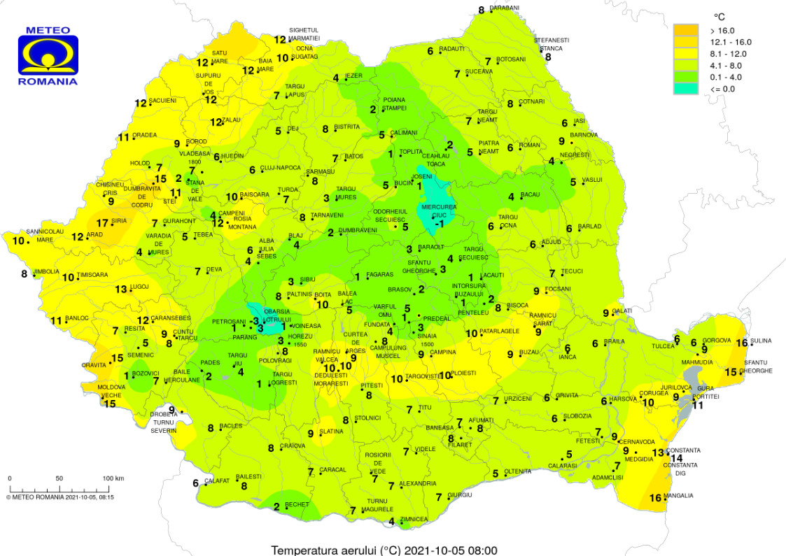 Vântul va avea intensificări la munte, în special pe crestele Carpaţilor Meridionali, unde rafalele vor depăşi 80…90 km/h, în sudul Banatului, cu viteze de peste 50…60 km/h, dar pe arii restrânse şi la viteze mai mici şi în restul teritoriului. Temperaturile maxime se vor încadra între 15 şi 26 de grade.