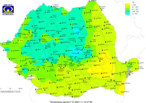 Vântul va sufla slab şi moderat, cu intensificări temporare în sudul Banatului unde la rafală se vor depăşi 55…65 km/h, iar la viteze mai mici pe litoral. Temperaturile maxime se vor încadra între 6 şi 13 grade, iar cele minime, în general, între -3 şi 7 grade.