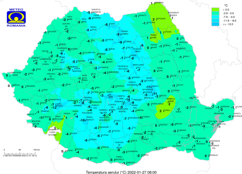 În București, valorile termice vor continua să crească uşor. Dimineata, -4…-2 grade, ceva mai putin in zona preoreseneasca, iar la amiaza avem 7…8 gradee. Cerul va fi mai mult senin, iar vântul va sufla slab şi moderat. Dimineaţa vor fi condiţii de ceaţă.