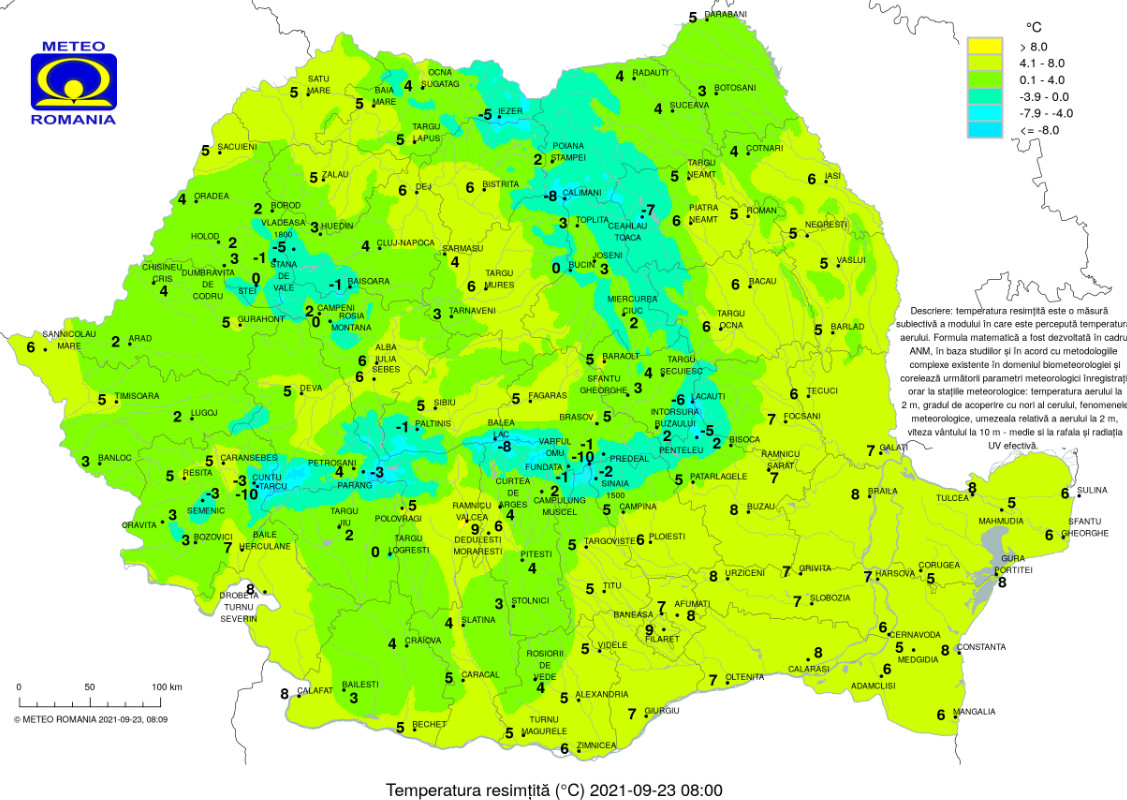 Temperaturile maxime se vor încadra între 10…11 grade în estul Transilvaniei și 20…21 de grade în vestul și sudul Olteniei, iar cele minime vor fi cuprinse, în general, între 2 și 9 grade, cu cele mai scăzute valori în depresiunile intramontane și în dealurile subcarpatice din sud, unde vor fi condiții de brumă.