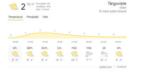 Temperaturile maxime de astăzi se vor încadra între -6 și 4 grade, pe când minimele se încadrează între -15 și -5 grade.