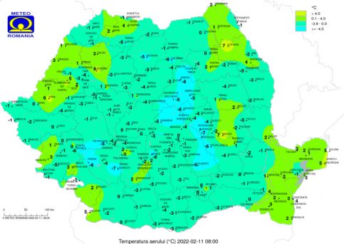 Maximele zilei se vor situa între 7 și 15 grade Celsius, iar temperaturile minime vor fi cuprinse între -3 și 6 grade Celsius. Pe arii restrânse se vor semnala condiții de ceață, în special dimineața și seara.
